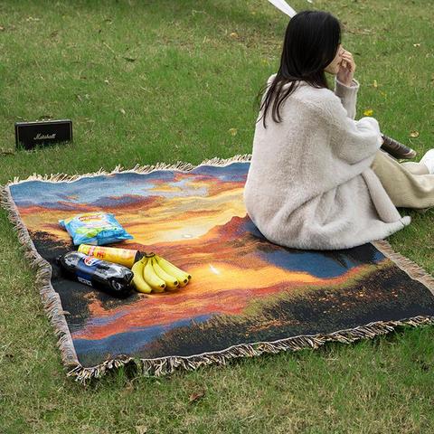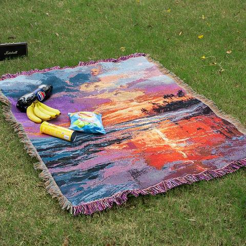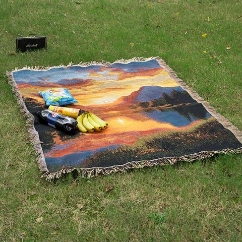 עיצוב מותאם אישית קמפינג בחוץ פיקניק נסיעות שמיכה raschel בית טקסטיל ארוג עם טבע בציר טבע בראשיתי